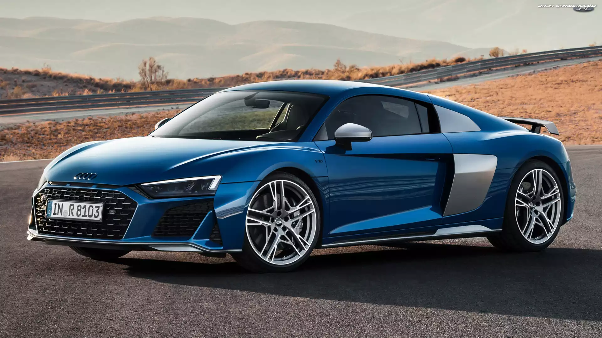 Samochód: Bok, Niebieskie, Audi R8 Coupe Performance