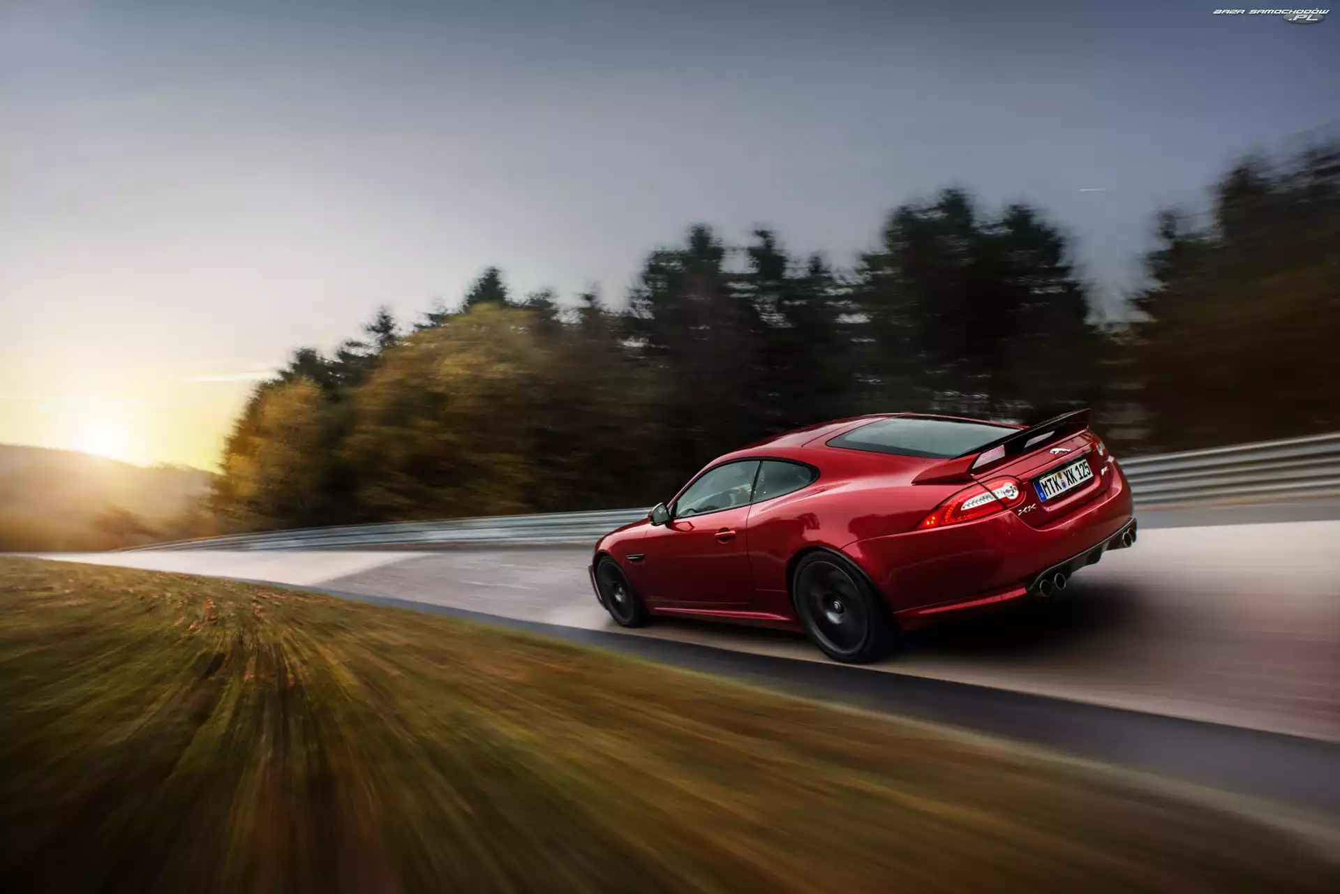 Drzewa, Droga, XK, Jaguar, Czerwony- Zdjęcia samochodów