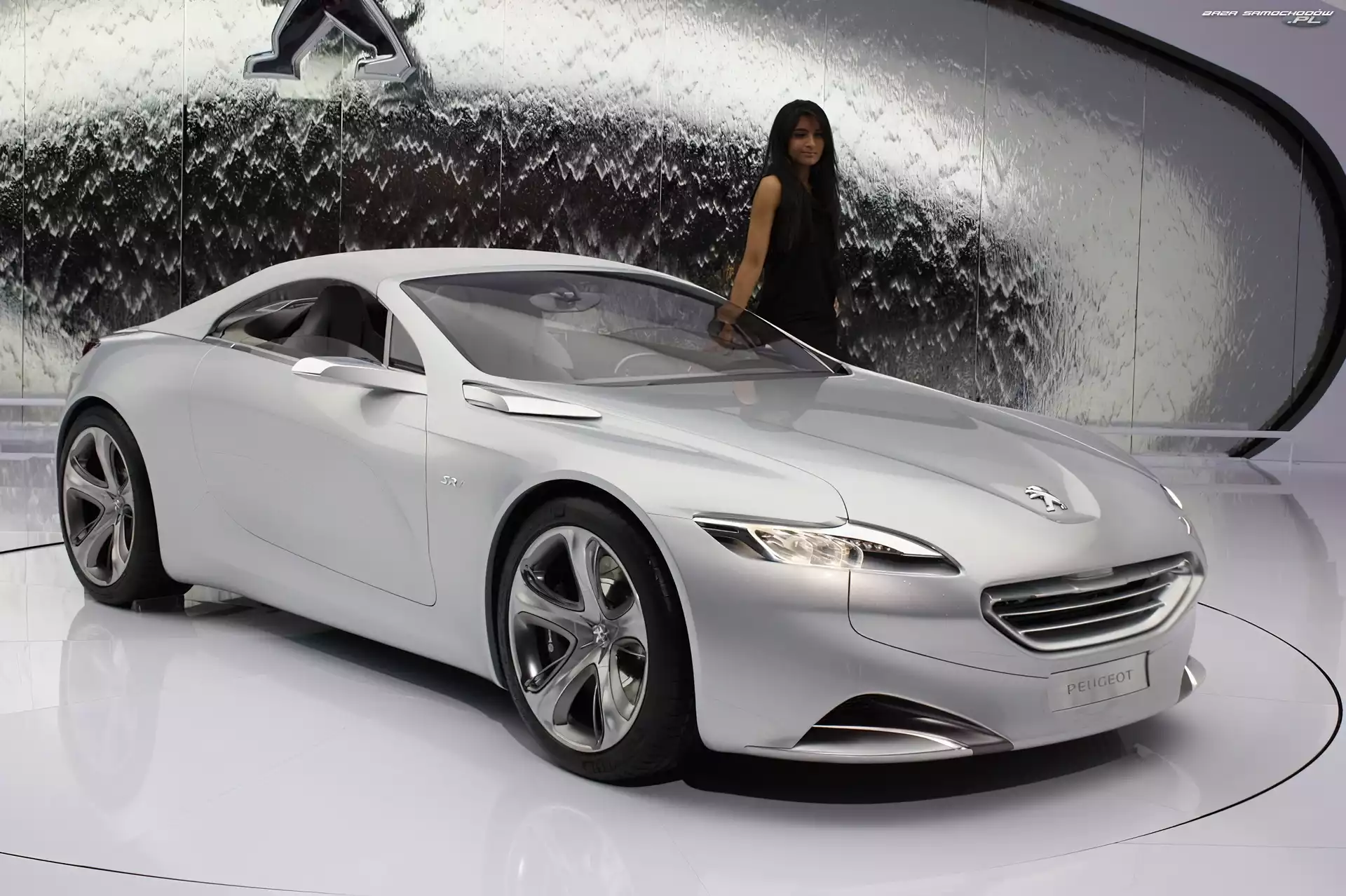 Kabriolet, Srebrny, Peugeot SR1 Lampa, Alufelga, Peugeot SR1, Tył Peugeot SR1, Srebrny Garaż, Kobieta, Peugeot SR1, Podziemny Peugeot SR1, Prezentacja Peugeot SR1, Odbicie Maska, Peugeot SR1, Reflektory Peugeot SR1, Modelka Hostessa, Debiut, Peugeot SR1 Peugeot SR1, Wystawa Zderzak, Peugeot SR1, Reflektor Sylwetka, Peugeot SR1, Sportowa Prezenterka, Peugeot SR1 Skóry, Peugeot SR1, Białe