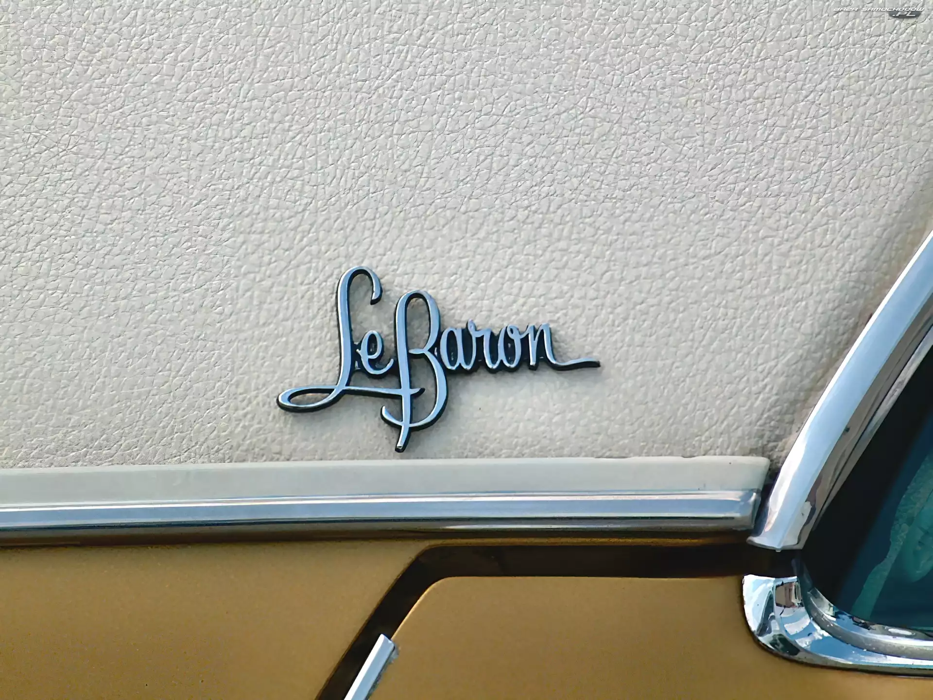 Kabriolet, Chrysler Le Baron Chrysler Le Baron, Wnętrze Chrysler Le Baron, Kabriolet Chrysler Le Baron, Drewniane, Boczne, Panele Chrysler Le Baron, Salon Alufelgi, Chrysler Le Baron, Szprychowe Le Baron, Emblemat