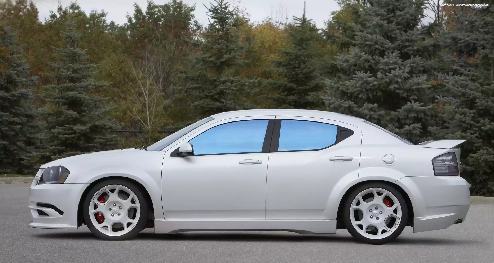 , Prawy, Bok Dodge Avenger, Stylistyczny, Biały, Pakiet Lexus, Dodge Avenger, Lampy Wystawa, Debiut, Dodge Avenger Ręczny, Dodge Avenger, Hamulec Droga, Dodge Avenger, Halogeny